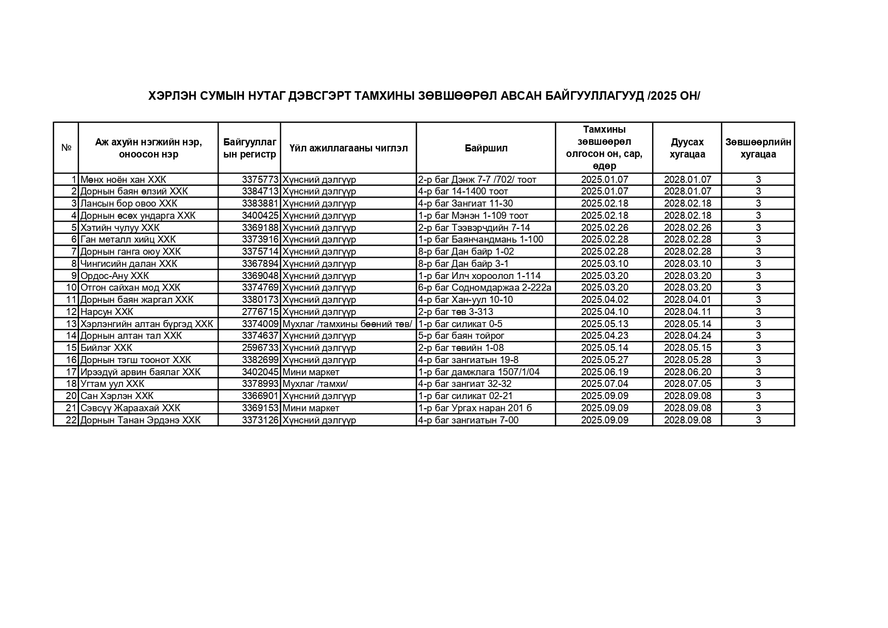 ХЭРЛЭН СУМЫН ХЭМЖЭЭНД ТАМХИНЫ ЗӨВШӨӨРӨЛ АВСАН ИРГЭН, АЖ АХУЙ НЭГЖ, БАЙГУУЛЛАГЫН МЭДЭЭЛЭЛ /2025.09.26/