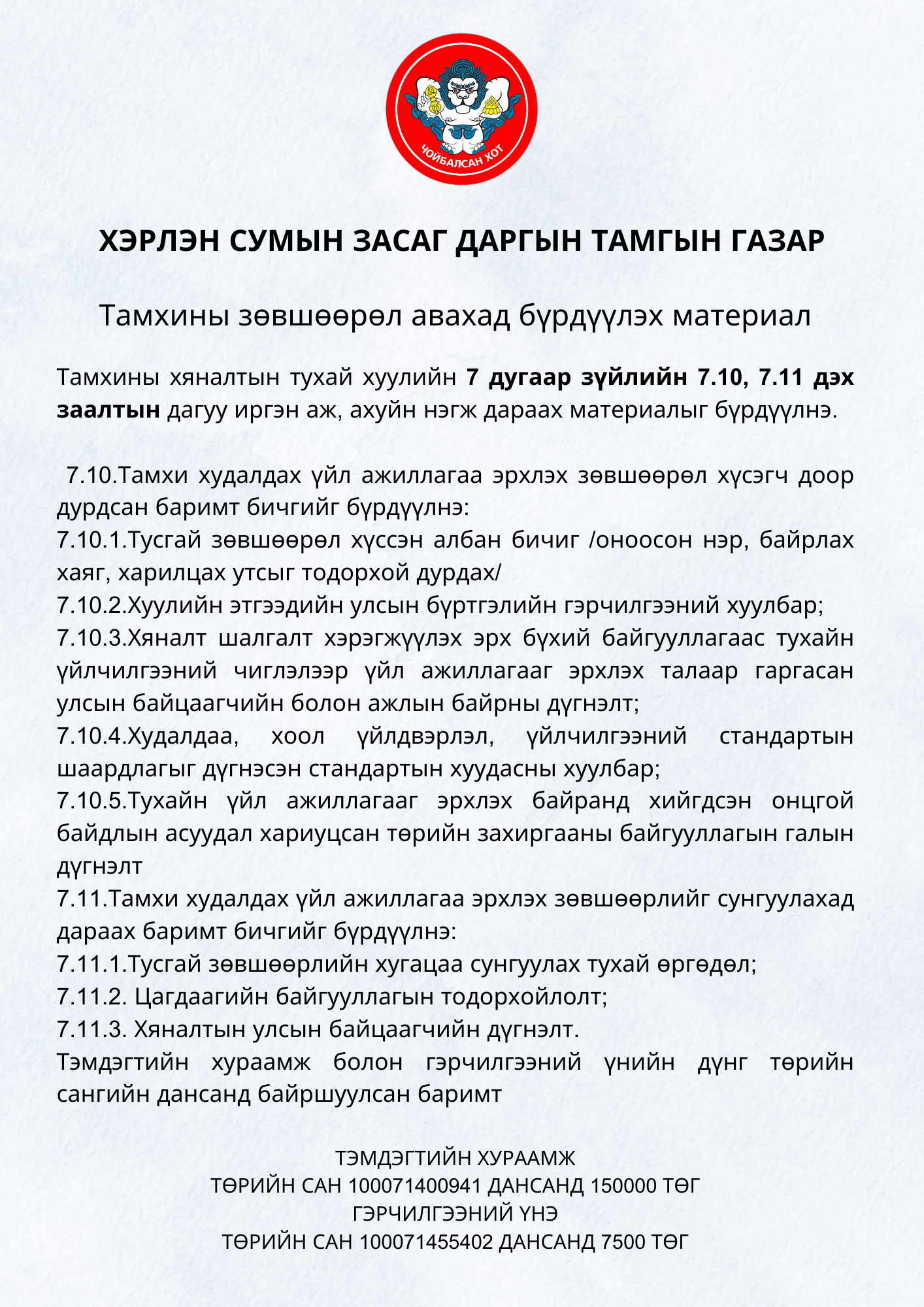 ТАМХИНЫ ЗӨВШӨӨРӨЛ АВАХАД БҮРДҮҮЛЭХ МАТЕРИАЛ